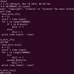 ===== 업데이트: 여러 분들의 도움과 피드백으로 잘못된 부분을 수정했습니다. 감사드립니다. (2017-03-16 14:00) ===== 인터넷을 하다 모 블로그 에서 dict() 안의 key를 찾는 것에 대한 속도 비교 글을 보았다.내가 알고 있던 바와 달라 직접 확인해보고 간만에 글을 하나 써보려 한다.우선, 작성자가 쓴 글과 동일한 조건에서 테스트를 해보자. 해당 글은 2015년 글이라서 일단 파이썬2라고 가정했다.그때와 지금의 컴퓨팅 파워를 생각해(?) iteration을 10만번으로 증가시켰다. 오잉? 작성자 말이 맞잖아??? 엄청나게 차이나잖아???아..앙돼 이건 인정할 수 없어 다시해볼거야 ㅂㄷㅂㄷ 이게 어떻게 된 일이지... 사실 나는 코딩을 이렇게 안해서 몰랐었다테스트하면서 이정도의 성..